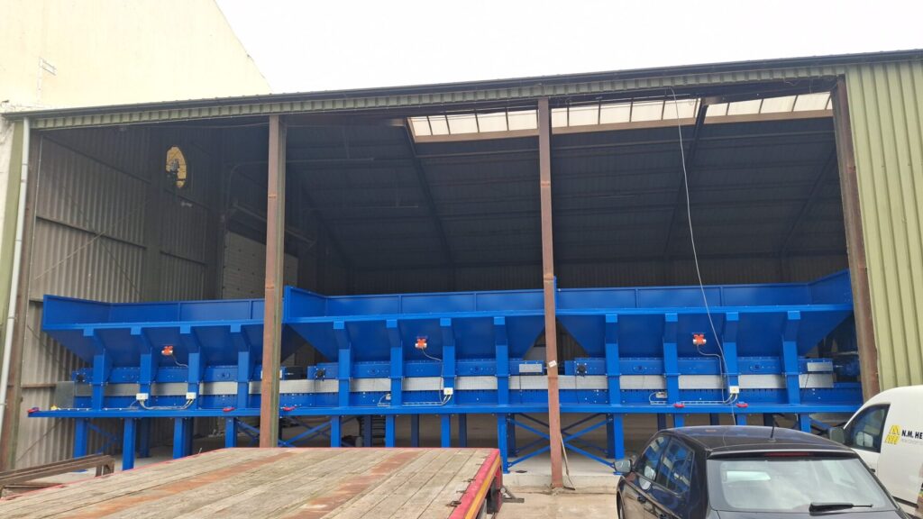 Für unseren Kunden Sortiva, ein Unternehmen, das sich auf Recycling spezialisiert hat, haben wir eine Anlage entworfen, produziert und vor Ort geliefert. Es handelt sich um eine stationäre Anlage mit drei Bunkern, die vollständig elektrisch betrieben wird. Eine Maschine, die vollständig nach den spezifischen Anforderungen des Kunden entwickelt wurde